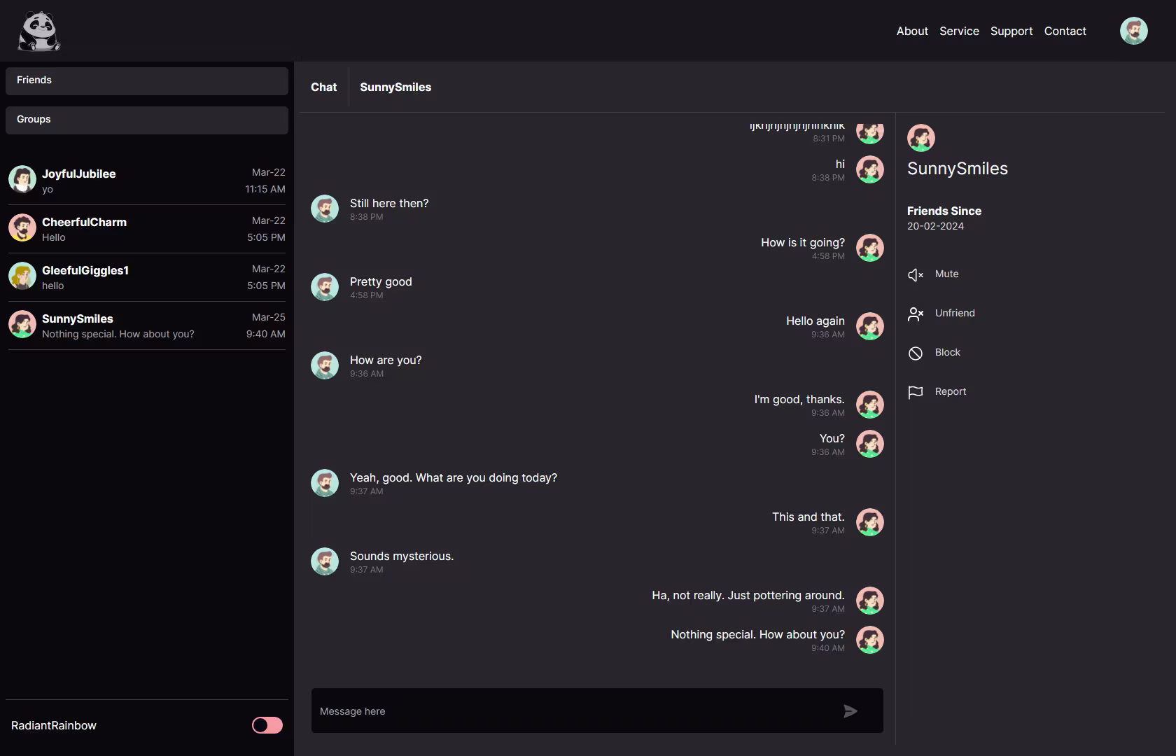 Dark mode chat app